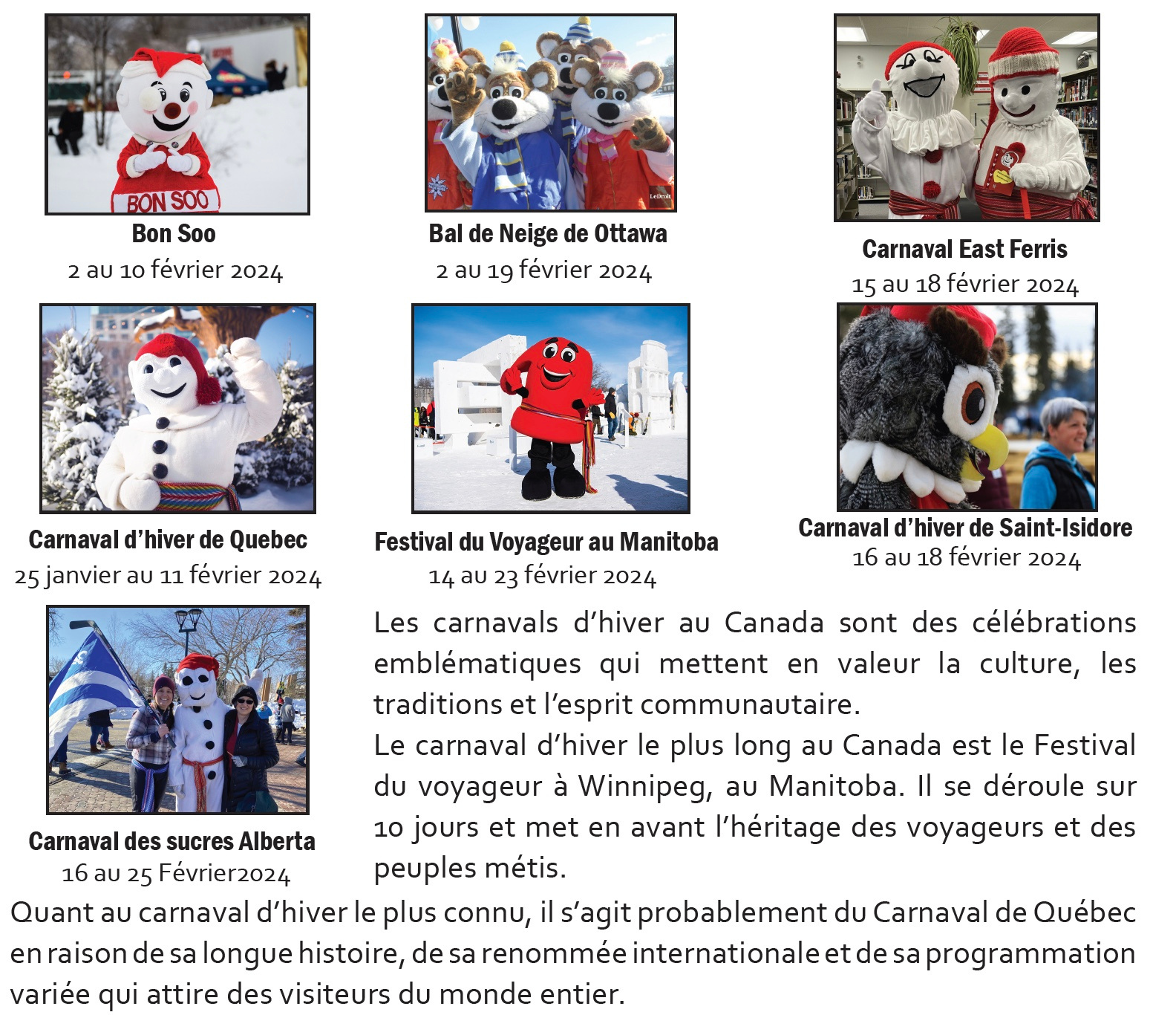 February 8: | Snow structure competition between classes at École élémentaire catholique Sts-Anges (open to the public) | North Bay Bons Amis Card Games | North Bay Community evening at École élémentaire catholique St-Vincent | 5 p.m. to 7 p.m. - North Bay Club Action 50+ | East Ferris |